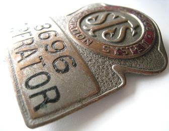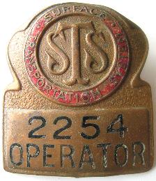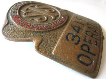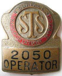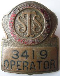 -- Description : Original bus operator hat badge (circa 1950s) from the long defunct Surface Transportation System bus company in New York City.