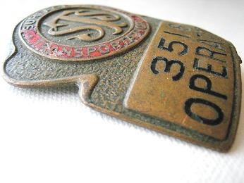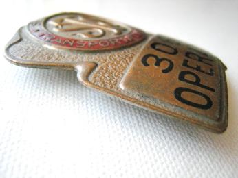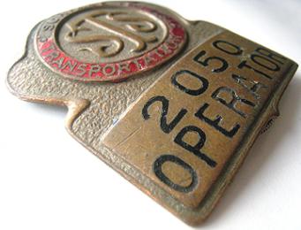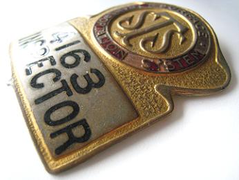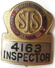-- Description : Original bus inspector hat badge (circa 1950s) from the long defunct Surface Transportation System bus company in New York City.