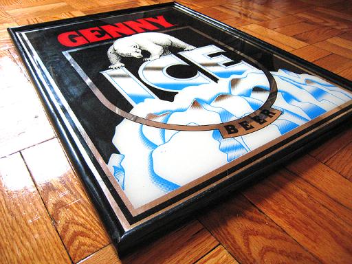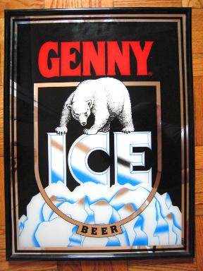 -- Description : Genny Ice Beer Mirror Sign. Measures 18 inches by 24 inches.