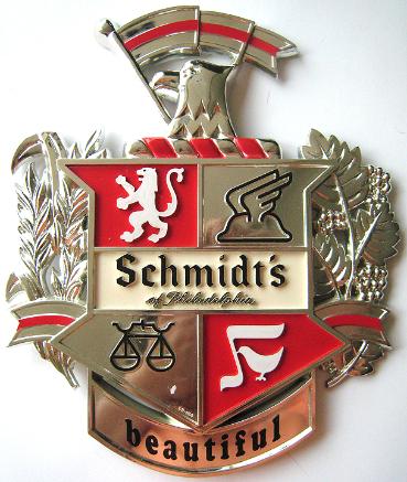 --Description : Original Schmidt's of Philadelphia Imported Beer sign. Made of plastic. On back, print reads: Coronet Adv. Prod. 501 Madison Ave. N.Y. 22 N.Y. Measures about 12 3/4 inches by 10 3/4 inches at its longest points.