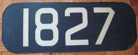 -- Item Name: Missouri Pacific Mopac EMD GP-9 Number Board Plate Sign 1827 -- Price: SOLD -- Description : Original Missouri Pacific Railroad Number Board from an EMD GP-9 class locomotive (according to research).Made of fiberboard. Measures 30 1/4 by 10 1/2 inches. On back, reads: Off MP GP9 T.L. EMD 10-81.