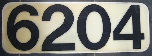 -- Item Name: Vintage Conrail Locomotive Number Sign 6204 -- Price: $70.00 -- Description : Conrail number board from a General Electric (GE) C40-8W class locomotive (according to research). Made of fiberglass/fiberboard material. Measures 26 3/8 inches by 9 inches. Condition as shown in photo.