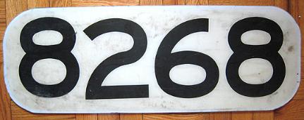 -- Item Name: Vintage Conrail Locomotive Number Sign 8268 -- Price: $70.00 -- Description : Conrail number board from an Electro-Motive Division (EMD) GP38-2 class locomotive.