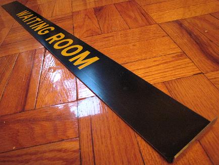 -- Item Name: Vintage Long Island Rail Road LIRR Waiting Room Aluminum Flange Sign -- Price: $95.00 -- Description : Original Long Island Rail Road Waiting Room flange sign. Made of aluminum. Measures 32 1/4 inches by 2 1/2 inches with a 1/2 inch flange.