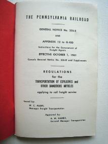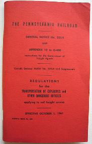 -- Item Name: Vintage 1961 PRR PA R.R. Freight Transport Dangerous Articles Book -- Price: $25.00 -- Description : transportation of explosives and dangerous articles. Contains 103 pages.